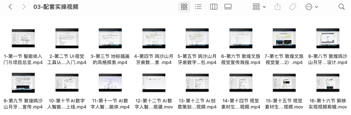 2. 一套教学视频,包含16节高清视频,自由掌控学习节奏;